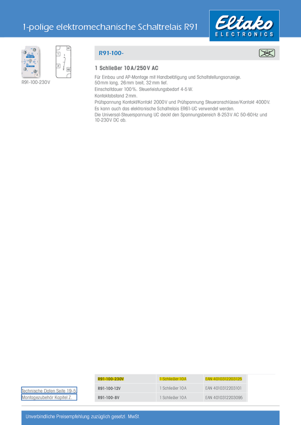 Przekaźnik przełączający Eltako R91-100-230VAC 230 V 8 A 1 NO 1 szt.