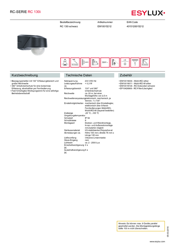 Czujnik ruchu ESYLUX EM10015212 130 ° IP54 czarny
