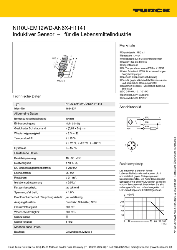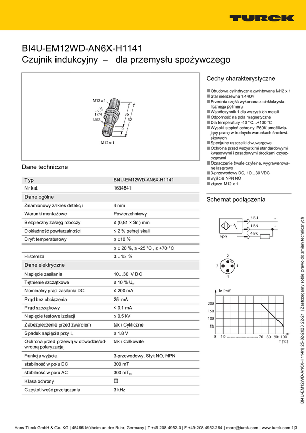 Turck Czujnik pola magnetycznego NPN NIMFE-EM12/4.0L61-UN6X-H1141/S1182