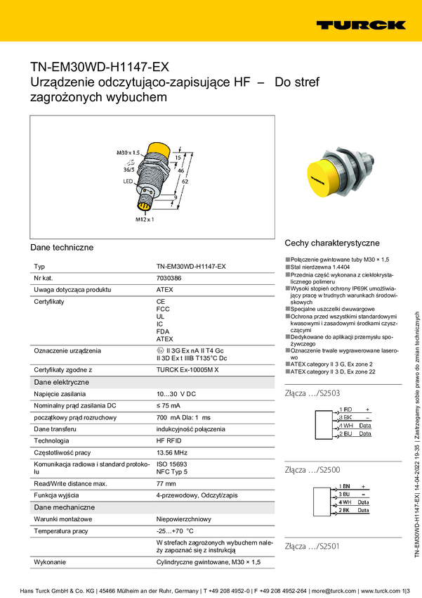Turck TN-EM30WD-H1147-EX Głowica do odczytu i zapisu