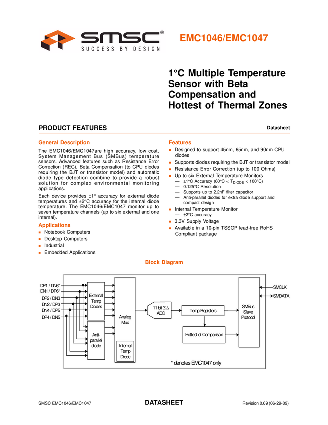 EMC1046/EMC1047 1°C Multiple Temperature Sensor with Beta Compensation and Hot