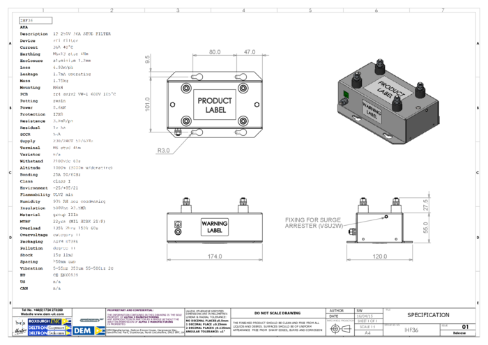 EMI Filter 36A 240VAC Screw Panel Mount