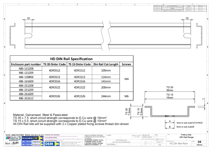 DIN Rail for 4xx-121208 and 4xx-121209 Series Enclosure Steel