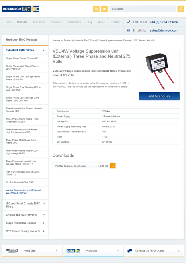 Power Line Filter 50Hz/60Hz 150A 500Vac Threaded Stud Flange Mount