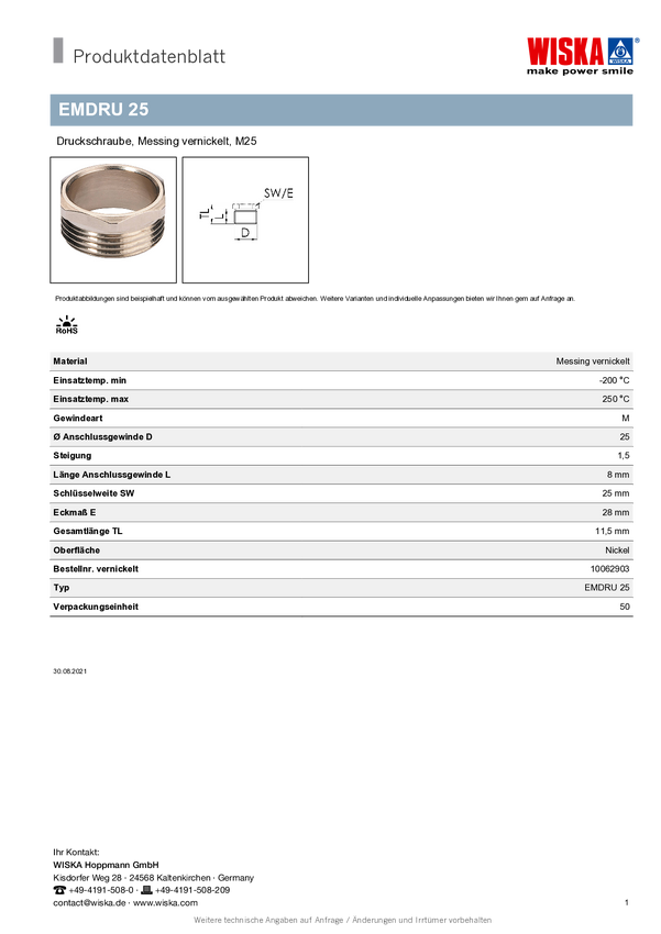Wiska 10062903 EMDRU 25 odporna na wstrząsy M25 metal naturalny 50 szt.