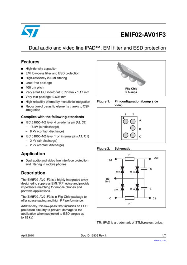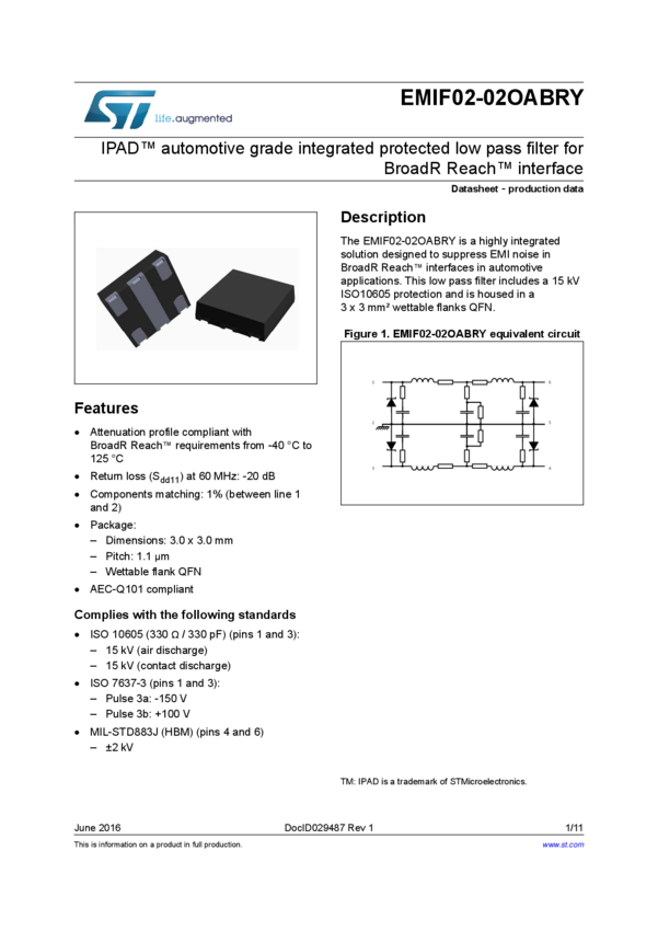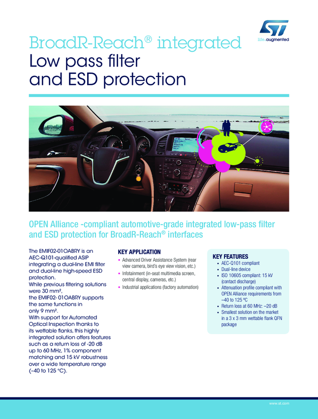 IPAD™ automotive-grade integrated protected low-pass filter for BroadR-Reach® interfaces