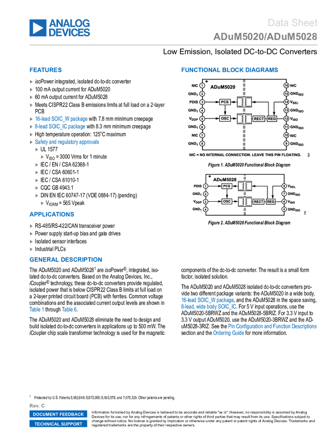 Low Emission 500 mW Isolated DC-to-DC Converter