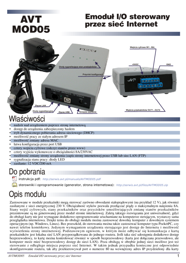 AVTMOD05 Emoduł I/O sterowany przez internet