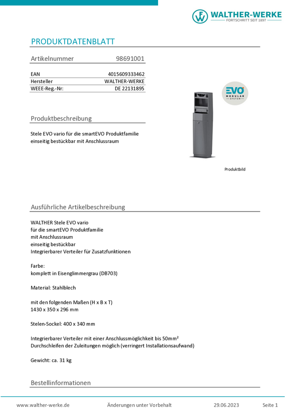 Piedestał eMobility Walther Werke Stele EVO Vario duo