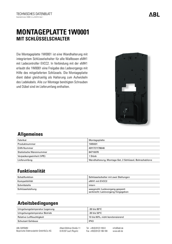 Płyta montażowa eMobility ABL Sursum 1W0001