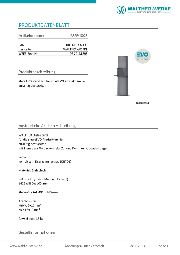 Piedestał eMobility Walther Werke Stele EVO Stand