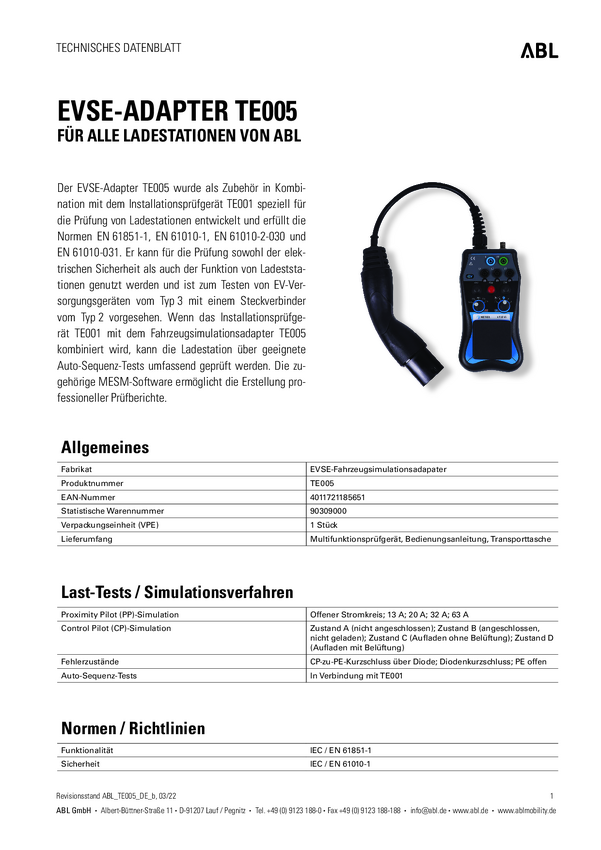 Kabel adaptera eMobility ABL Sursum TE005 Typ 2