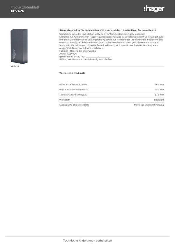 Piedestał eMobility Walther Werke Stele EVO Vario single