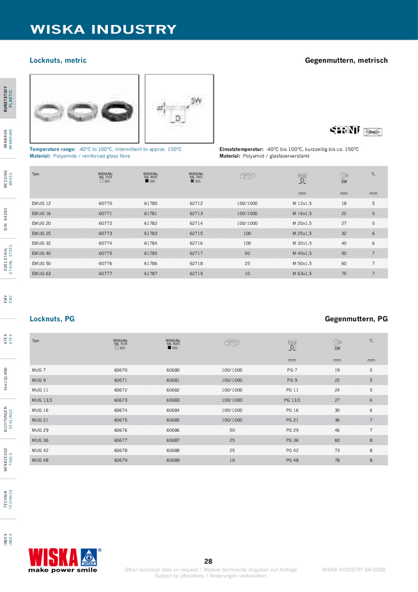 Przeciwnakrętka, Wiska EMUG M20 RAL 7035 60772, M 20, poliamid wzmocniony, jasnoszara