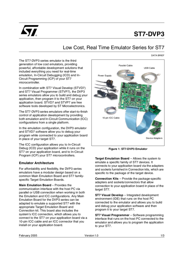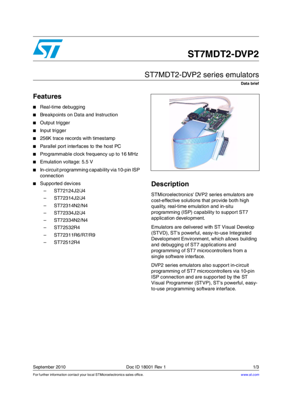 ST7MDT2-DVP2 emulator development kit with power supply for Europe (220Vac)