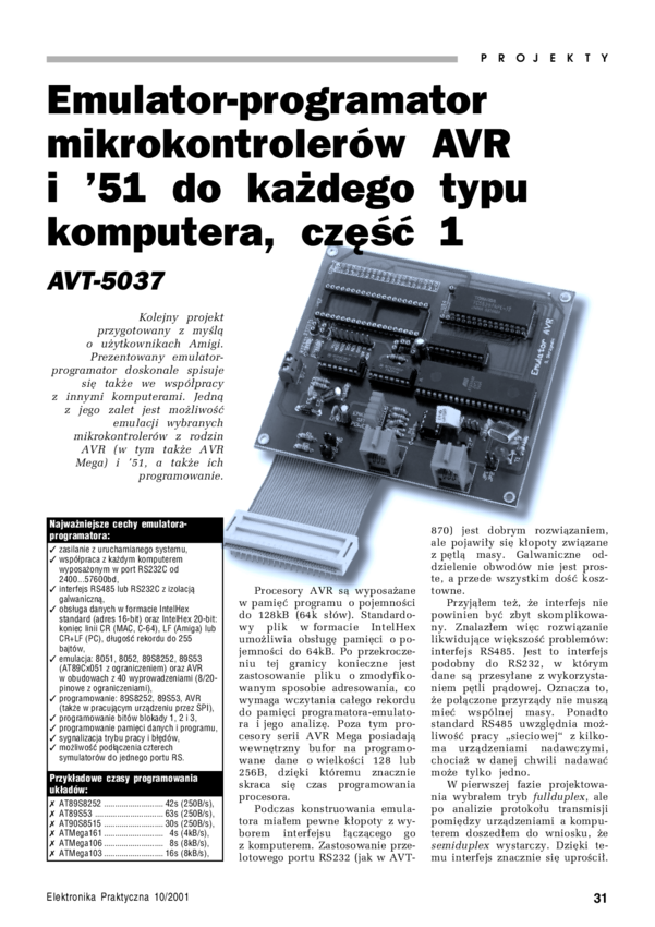 AVT5037 Emulator - programator mikrokontrolerów AVR I `51