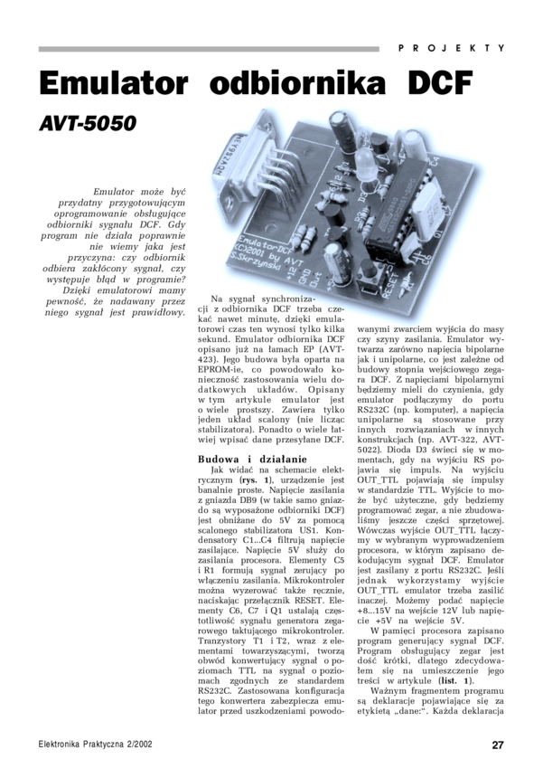AVT5050 A+ Emulator odbiornika DCF - płytka drukowana i zaprogramowany układ