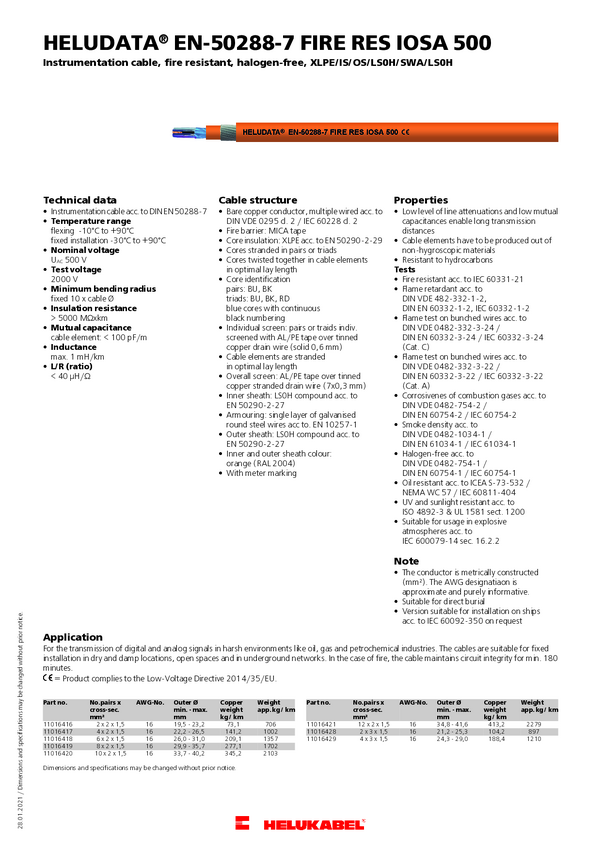 Helukabel 11016419 Przewód instrumentalny HELUDATA® EN50288-7 FIRE RES IOSA 500 8 x 2 x 1.5 mm² pomarańczowy 100 m