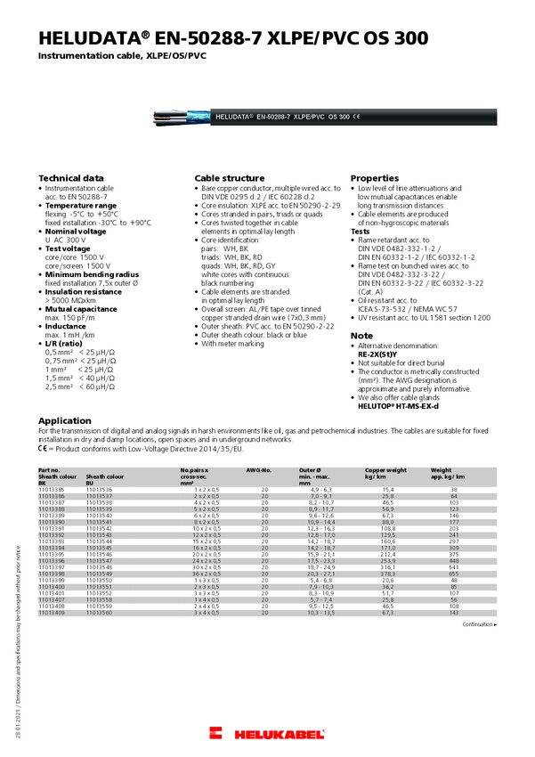 Helukabel 11014080 Przewód instrumentalny HELUDATA® EN50288-7 OSA 300 1 x 2 x 1.5 mm² czarny 100 m