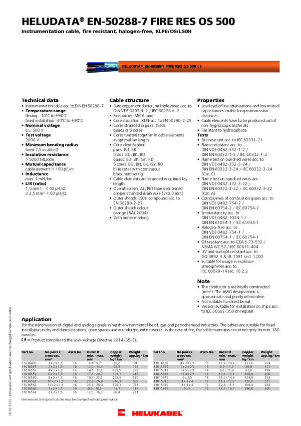 Helukabel 11016557 Przewód instrumentalny HELUDATA® EN50288-7 FIRE RES OS 500 2 x 2 x 1.5 mm² pomarańczowy 100 m