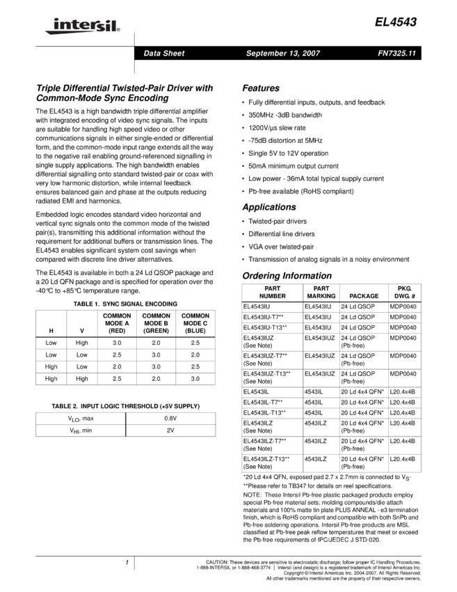 AD723: 2.7 V to 5.5 V RGB-to-NTSC/PAL Encoder with Load Detect and Input Termination Switch