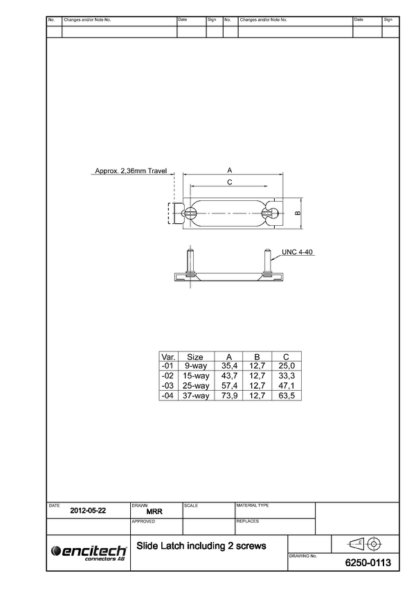 encitech 6250-0113-02 SLIDE LOCK,SIZE 15 -Kit Blokada przesuwna metal 1 szt.