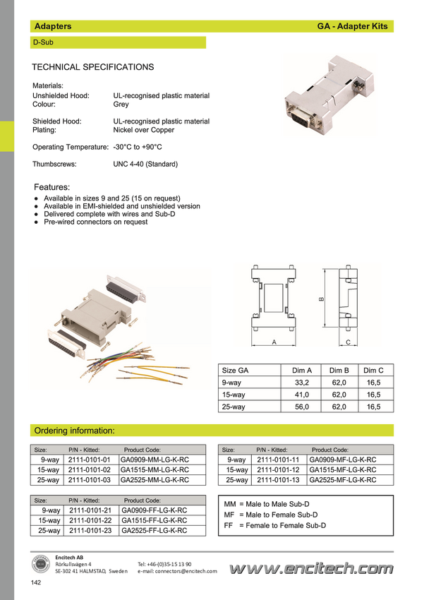 Adapter D-Sub encitech 2401-0100-01 złącze męskie D-SUB 9-pin - złącze męskie D-SUB 9-pin