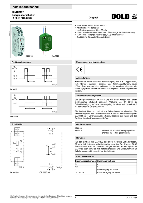 Dold 0029837 Energooszczędny przełącznik IK8813.81, 1 - 20 min, 10 A, 1 szt.