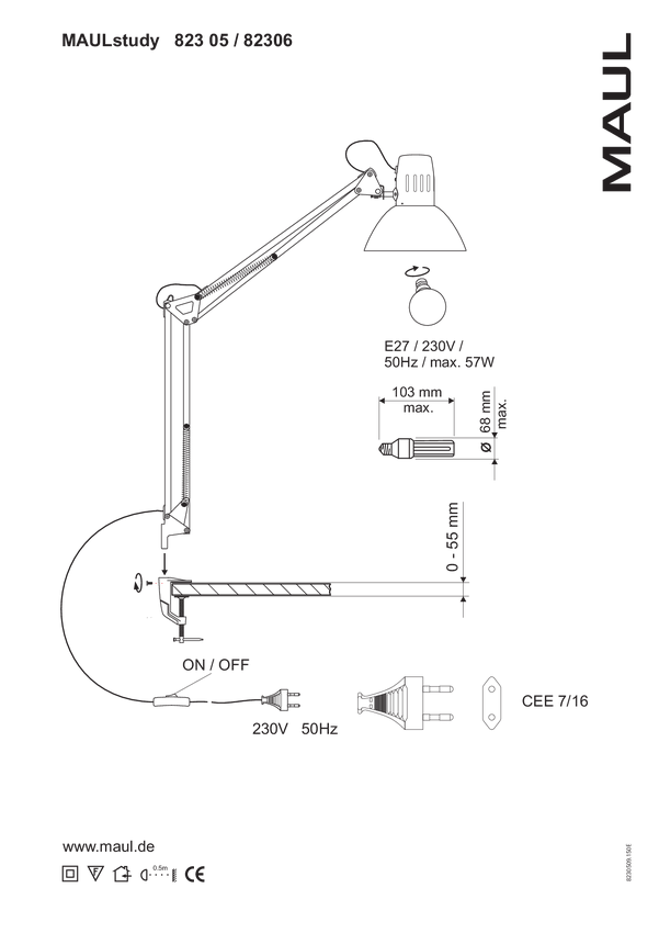 Lampa z zaciskiem Maul MAULstudy 8230595 lampa energooszczędna E-27 60 W srebrny