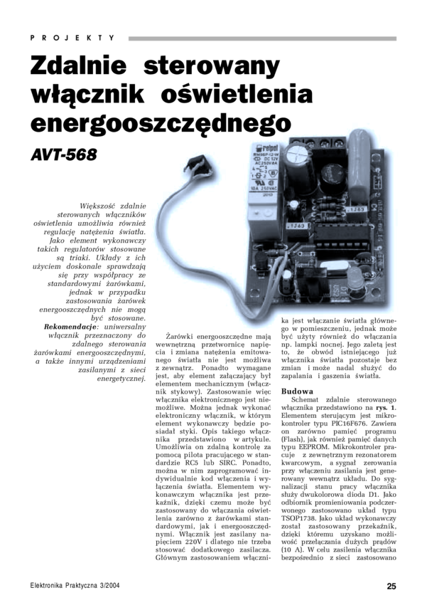 AVT568 B Zdalnie sterowany włącznik oświetlenia energooszczędnego - zestaw do samodzielnego montażu