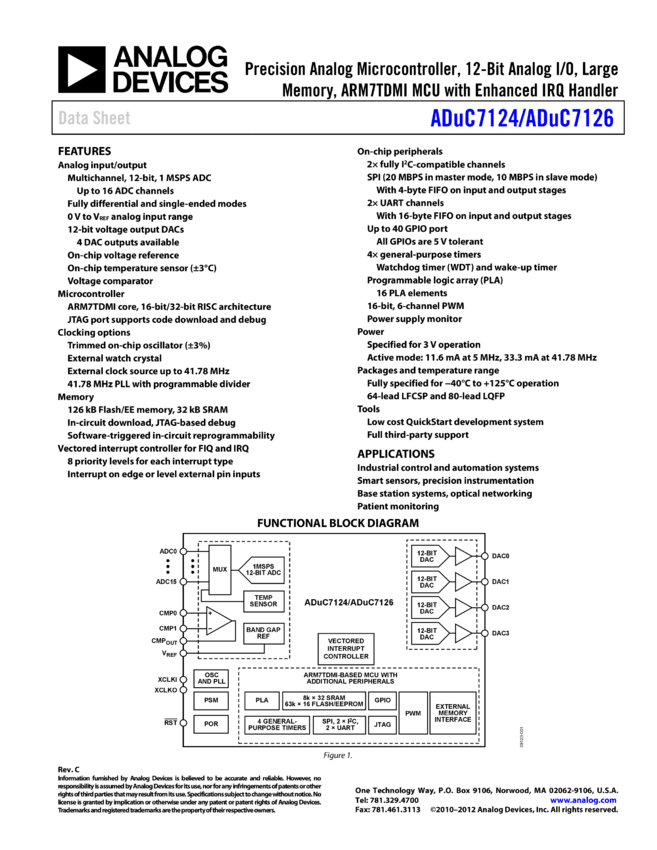 ADUC7126: Precision Analog Microcontroller, 12-Bit Analog I/O, Large Memory, ARM7TDMI MCU with Enhanced IRQ Handler