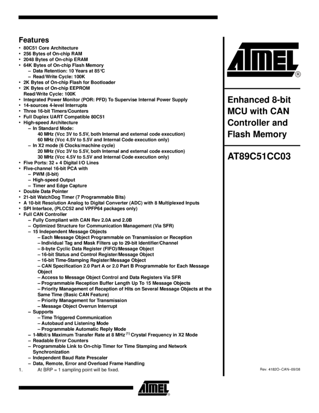 Enhanced 8-Bit Microcontroller with CAN Controller and Flash