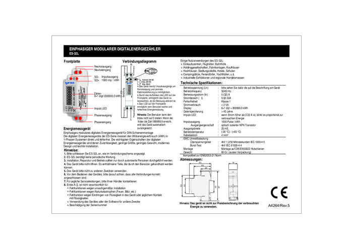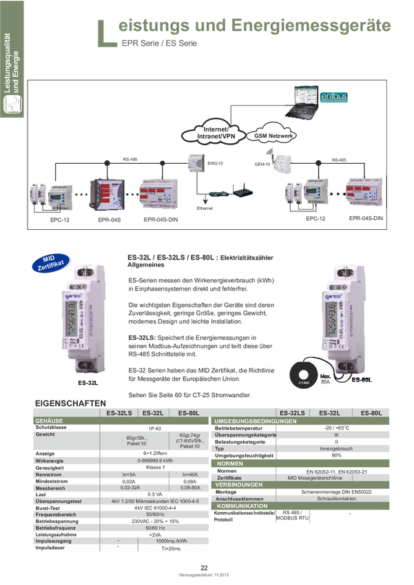 ENTES ES-32L MID 101513 Licznik prądu przemiennego cyfrowy 32 A Zezwolenie MID: tak 1 szt.