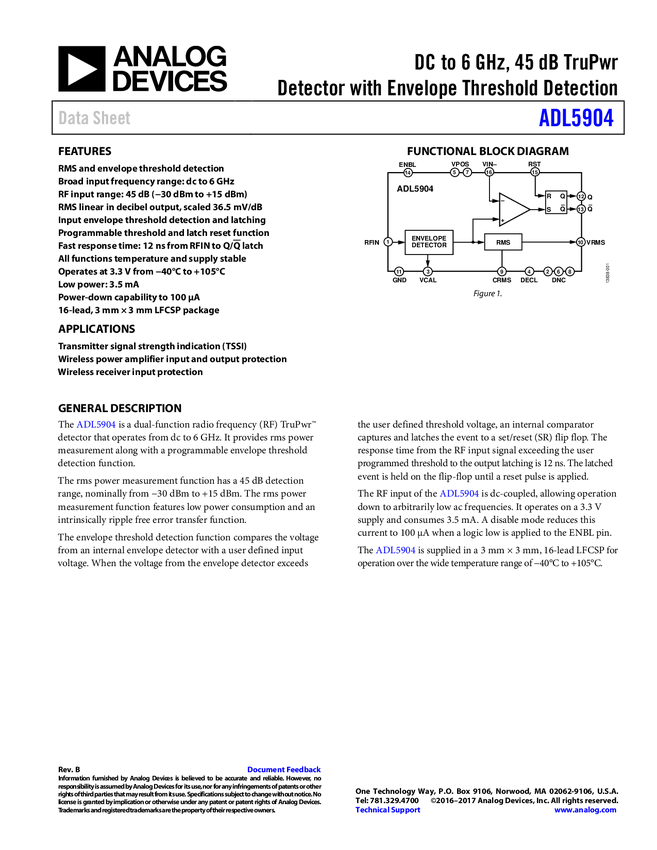 RMS Power Detector & Envelope Tracker, DC - 3.9 GHz