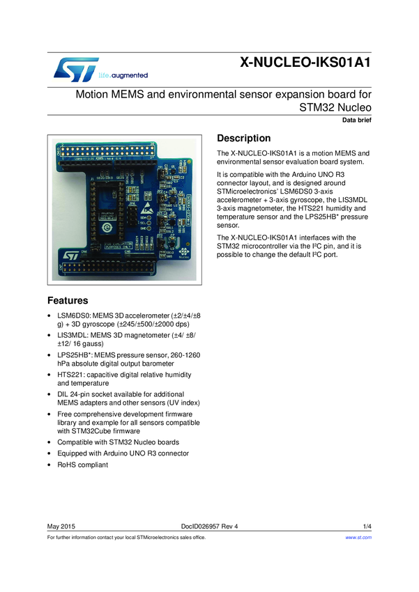 Motion MEMS and environmental sensor expansion board for STM32 Nucleo