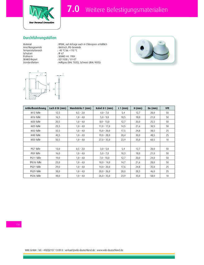 WKK ART020114 Przepust kablowy Maksymalna średnica mocowania 17 mm EPDM srebrno-szary (ral 7001) 1 szt.