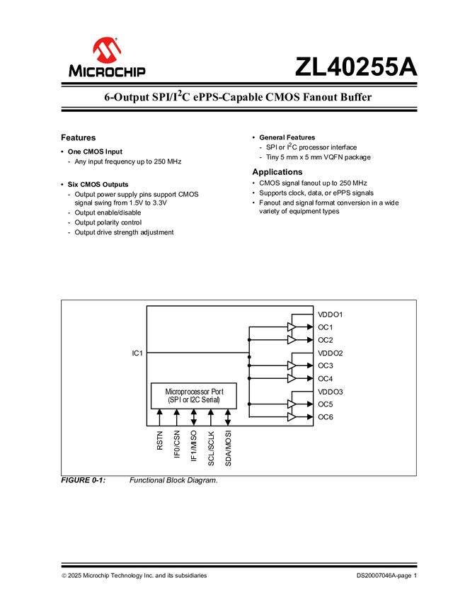 ZL40255A - 6-Output SPI/I2C ePPS-Capable CMOS Fanout Buffer