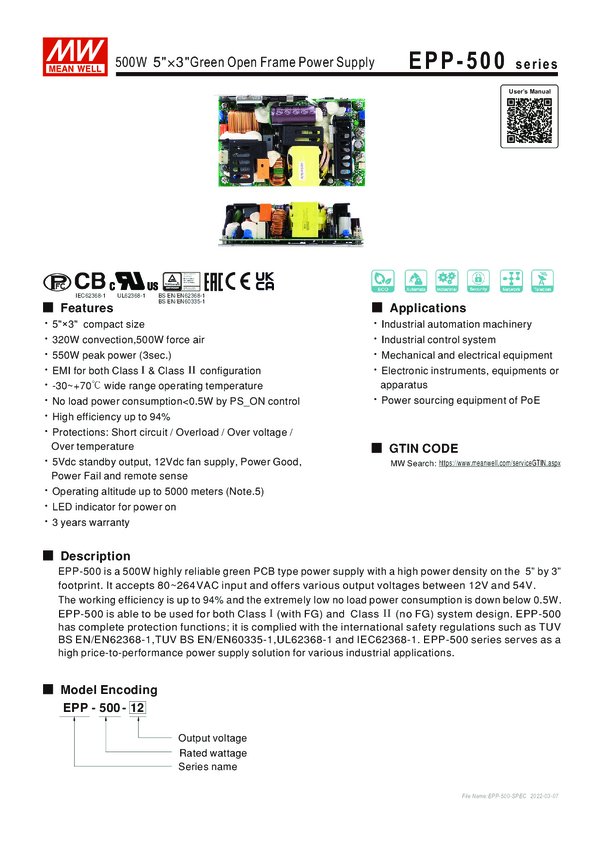 MEAN WELL EPP-500-54 Zasilacz 54 V/DC 9.26 A 500 W