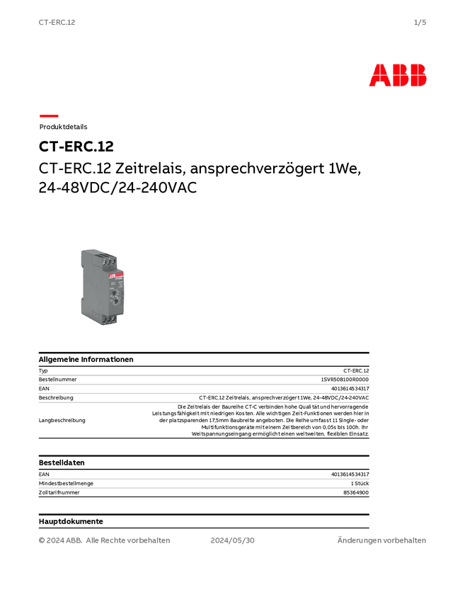 ABB 1SVR508100R0000 CT-ERC.12 Przekaźnik czasowy 1 szt. Zakres czasu: 0.05 - 360000 s