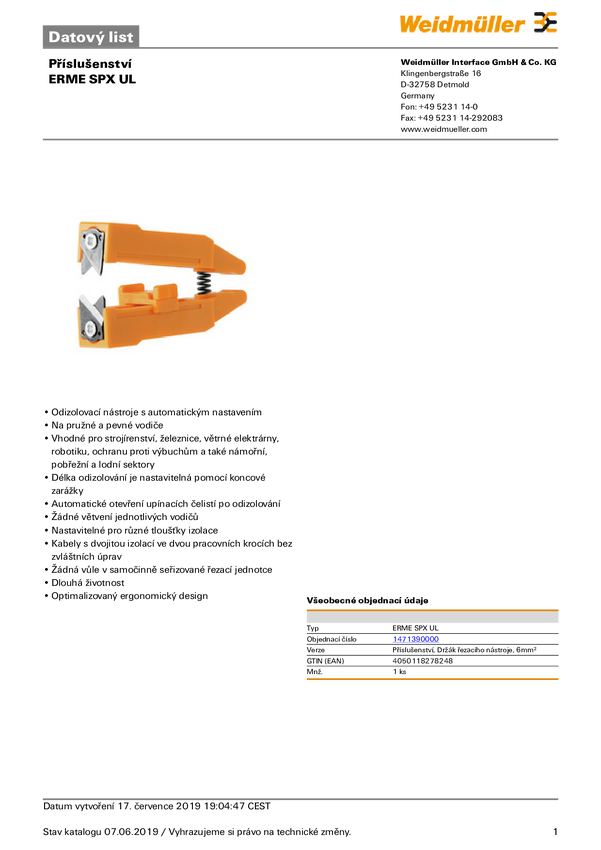 Weidmüller ERME SPX UL 1471390000 Narzędzie do ściągania izolacji 0.25 do 6 mm²