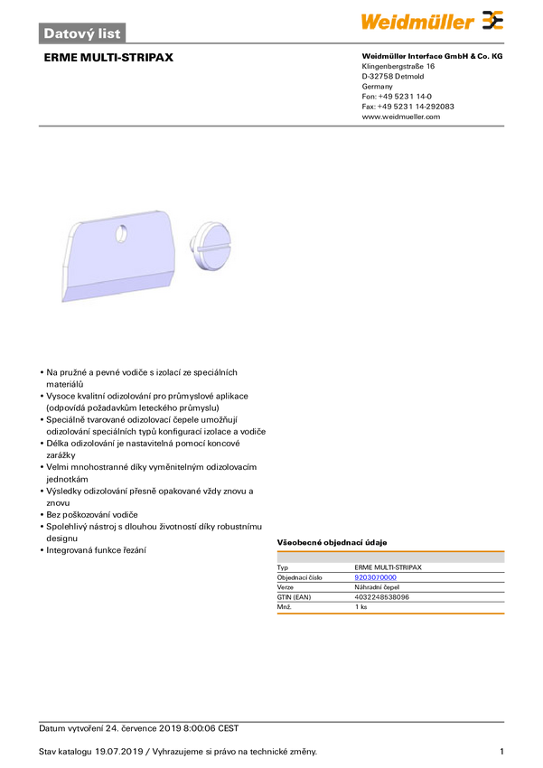 Ostrze do ściągacza izolacji Weidmüller ERME MULTI-STRIPAX 9203070000