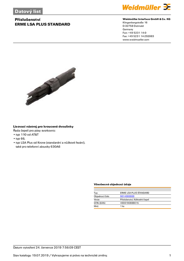 Weidmüller 9014000000 ERME LSA Ostrze narzędzia do wyciskania Kompatybilność kabel skrętka Kompatybilność z markami Weid