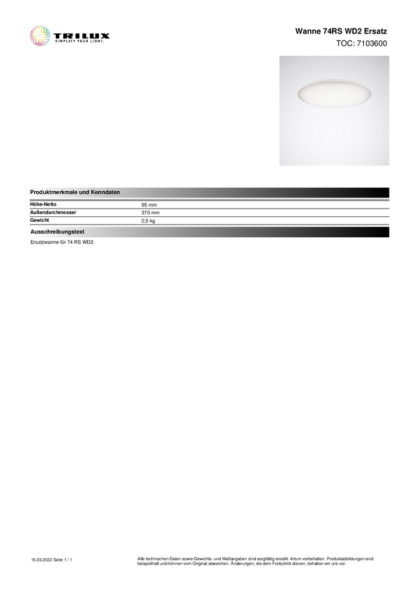 Trilux 7103600 Okładka Wanne 74RSWD2 Ersatz 1 szt.