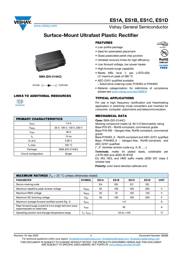Dioda prostownicza FRED 150V/1A 35ns SMD