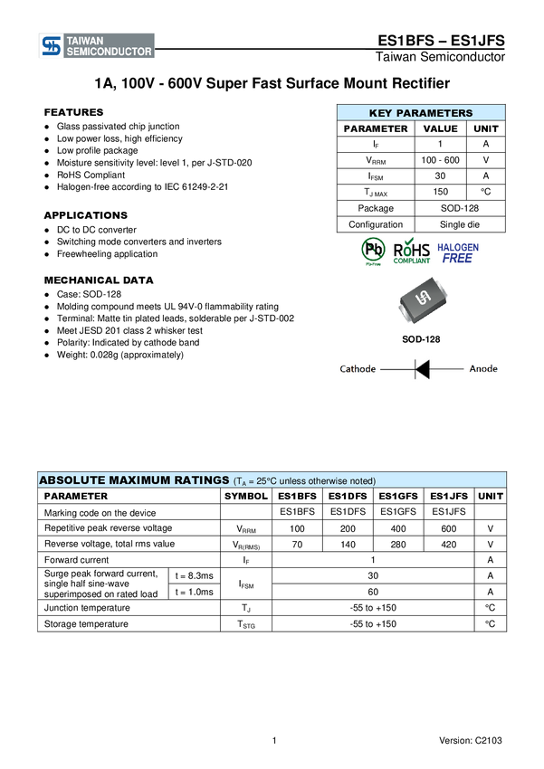 Dioda ESD Taiwan Semiconductor ES1GFS N/A N/A