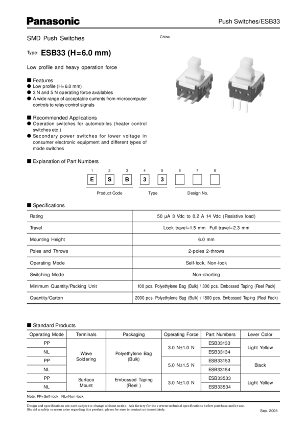 Electromechanical Switch Push Switch N.O./N.C. DPDT 0.2A Embossed T/R