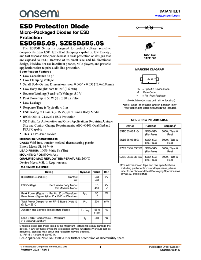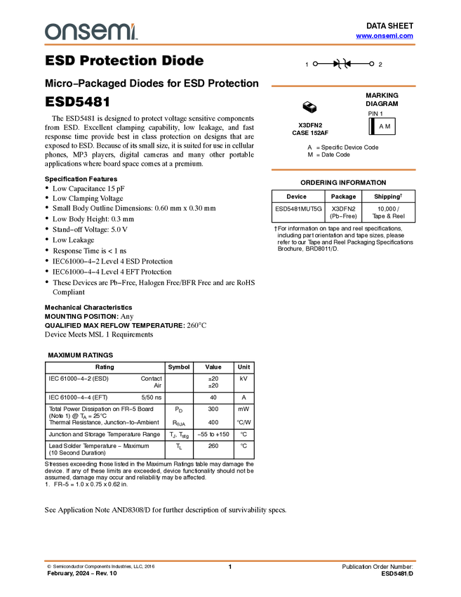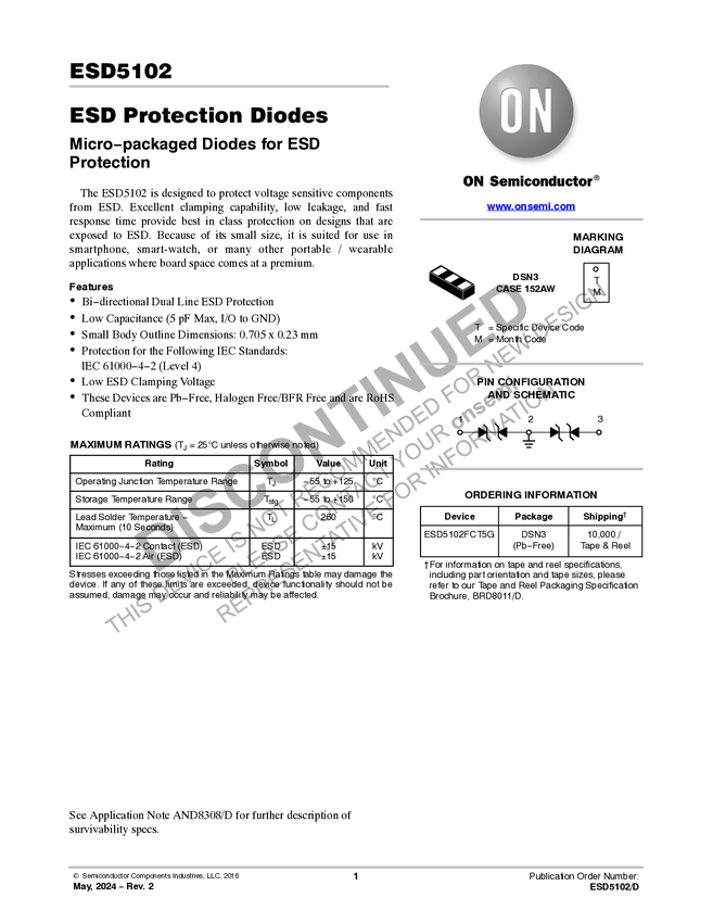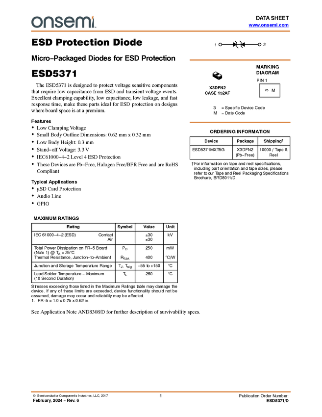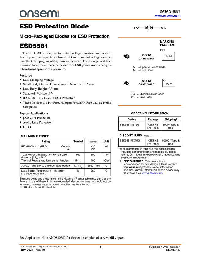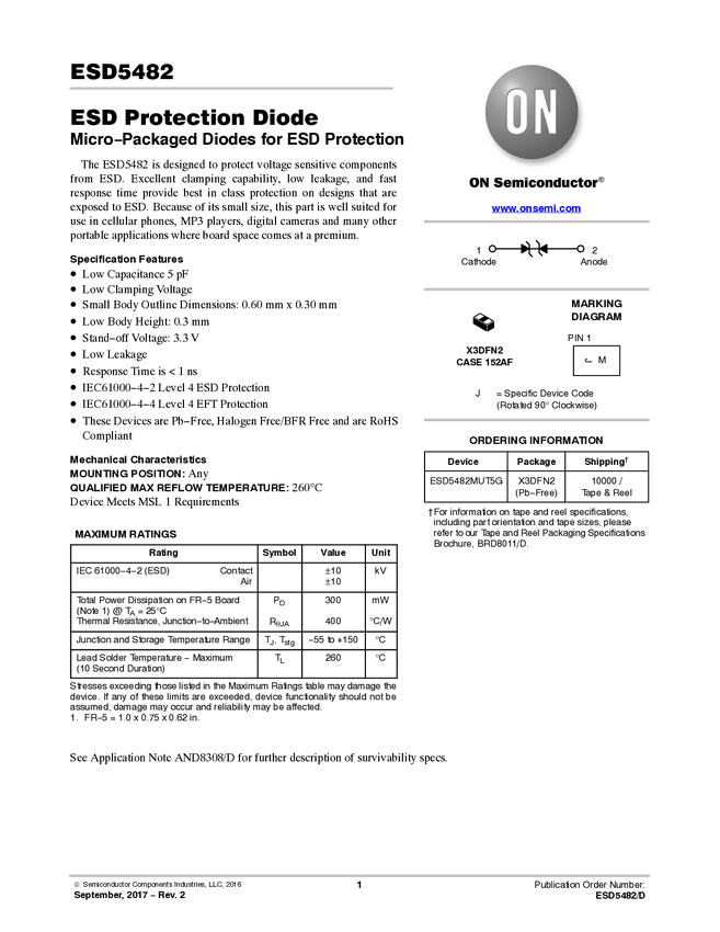 Micro−Packaged (0201 DFN) Diodes for ESD Protection of 3.3 V GPIO, Audio and uSD Card lines