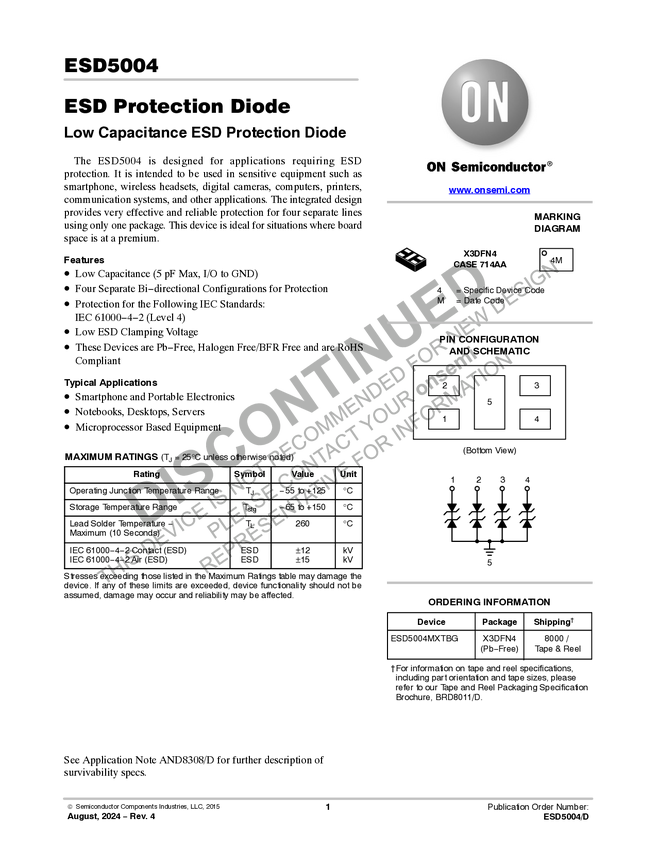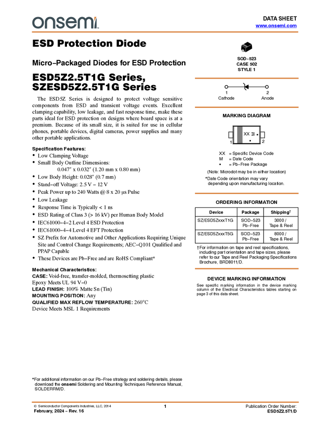 ESD Protection Diode, Low Leakage, Fast Response Time, with Clamping Capability