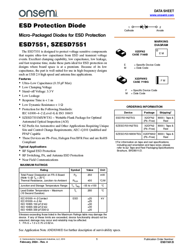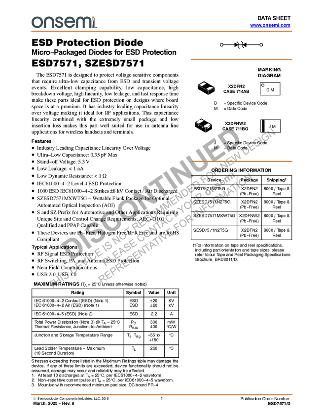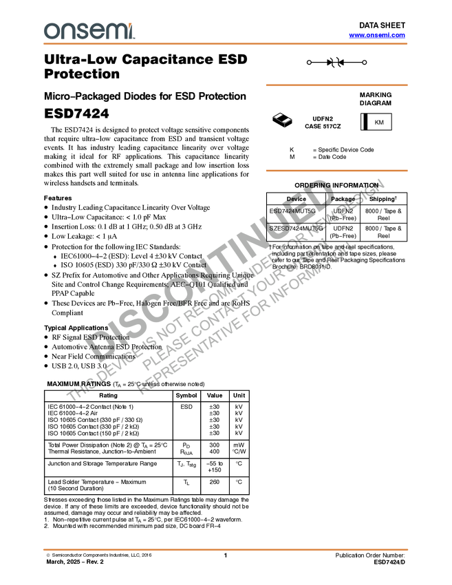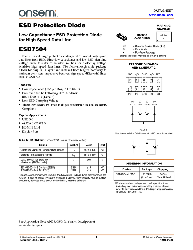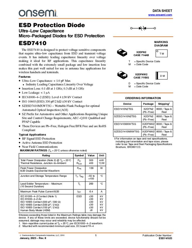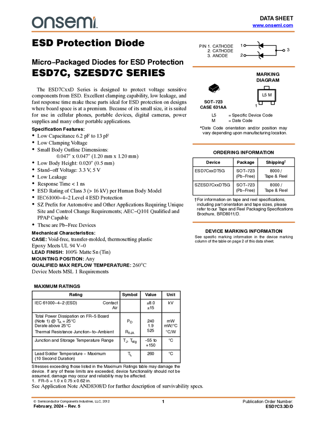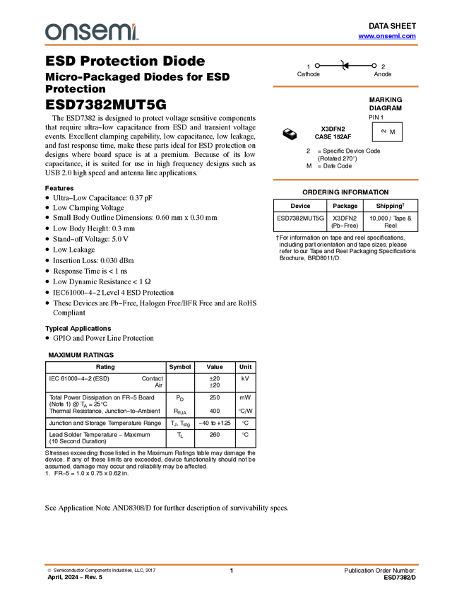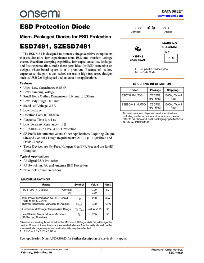 ESD Protection Diodes, Low Capacitance, Unidirectional