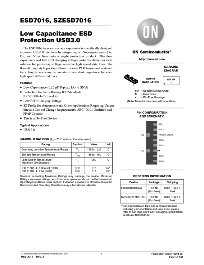 ESD Protection, 3-Line, Very Low Capacitance, for USB